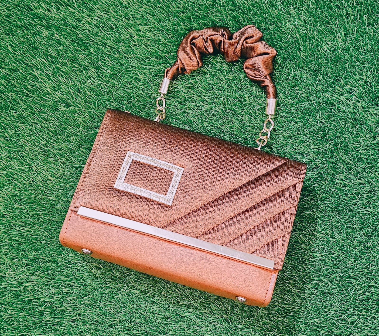 - Handle: Satin Scrunchie Handle + Metal Chain Links